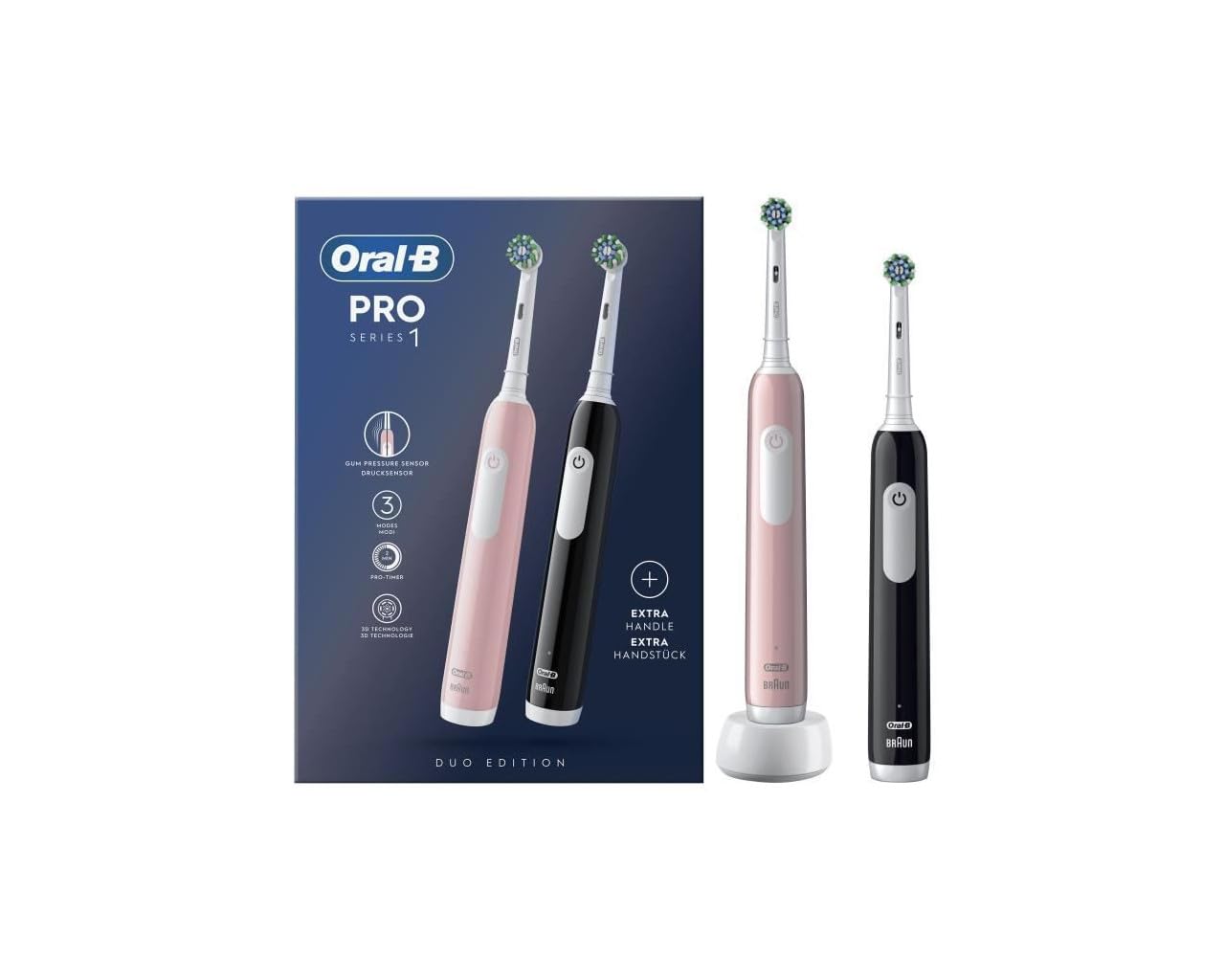 ![]() | Oral-B Pro Series 1 elektryczna szczoteczka do zębów, dwupak, 2 końcówki, 3 tryby czyszczenia i czujnik ciśnienia do pielęgnacji zębów, zaprojektowana przez brązowy, różowy/czarny | 69.57 zł | B0C6MJC9HJ | 8001090915191 |