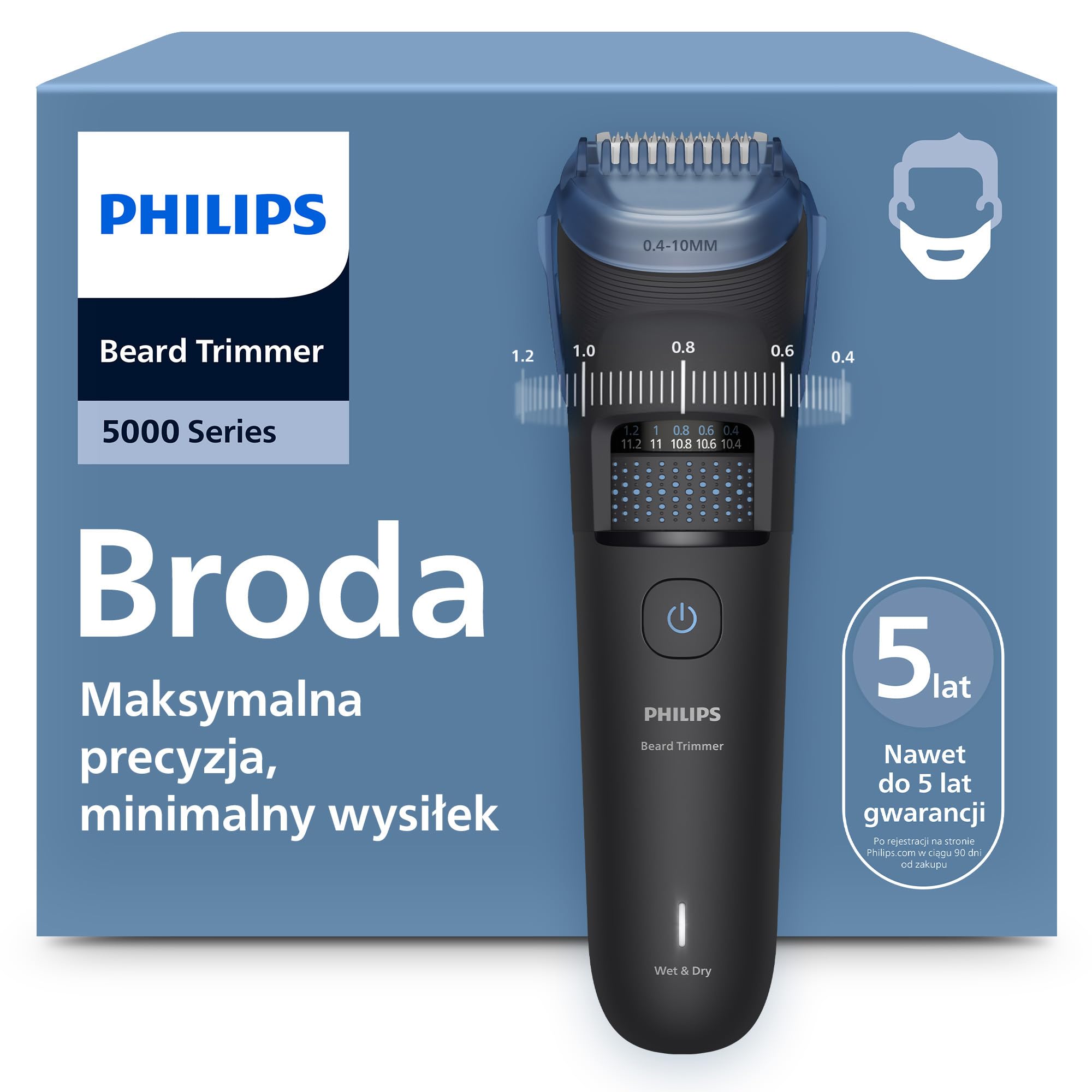 ![]() | Trymer do brody Philips z serii 5000 – samoostrzące się metalowe ostrza, 40 ustawień długości, BeardSense, zbiornik na włosy, 100% wodoodporności, nasadka do cieniowania, etui podróżne, BT5785/30 | 68.54 zł | B0F71KSBJD | 8720689042031 |