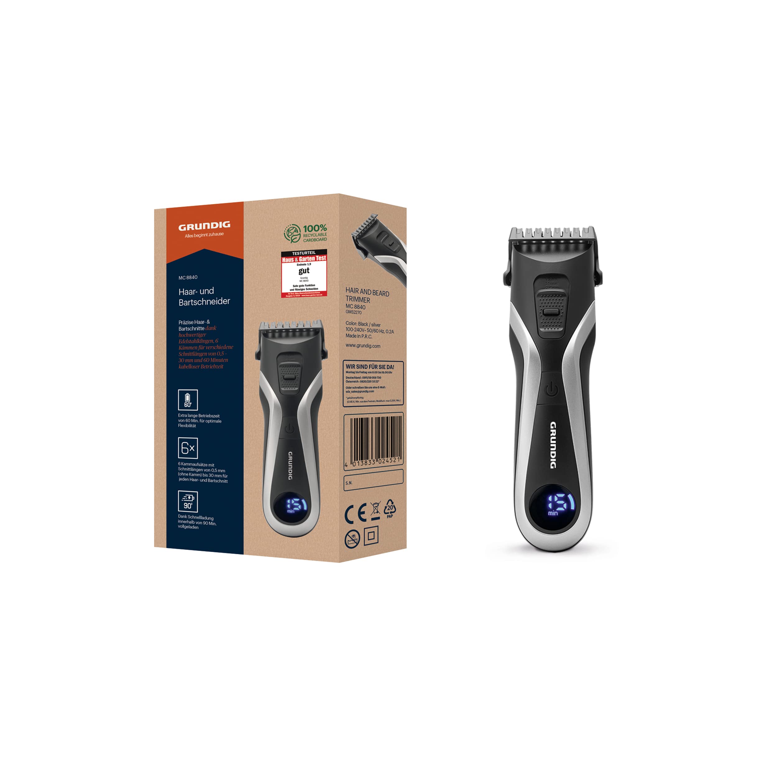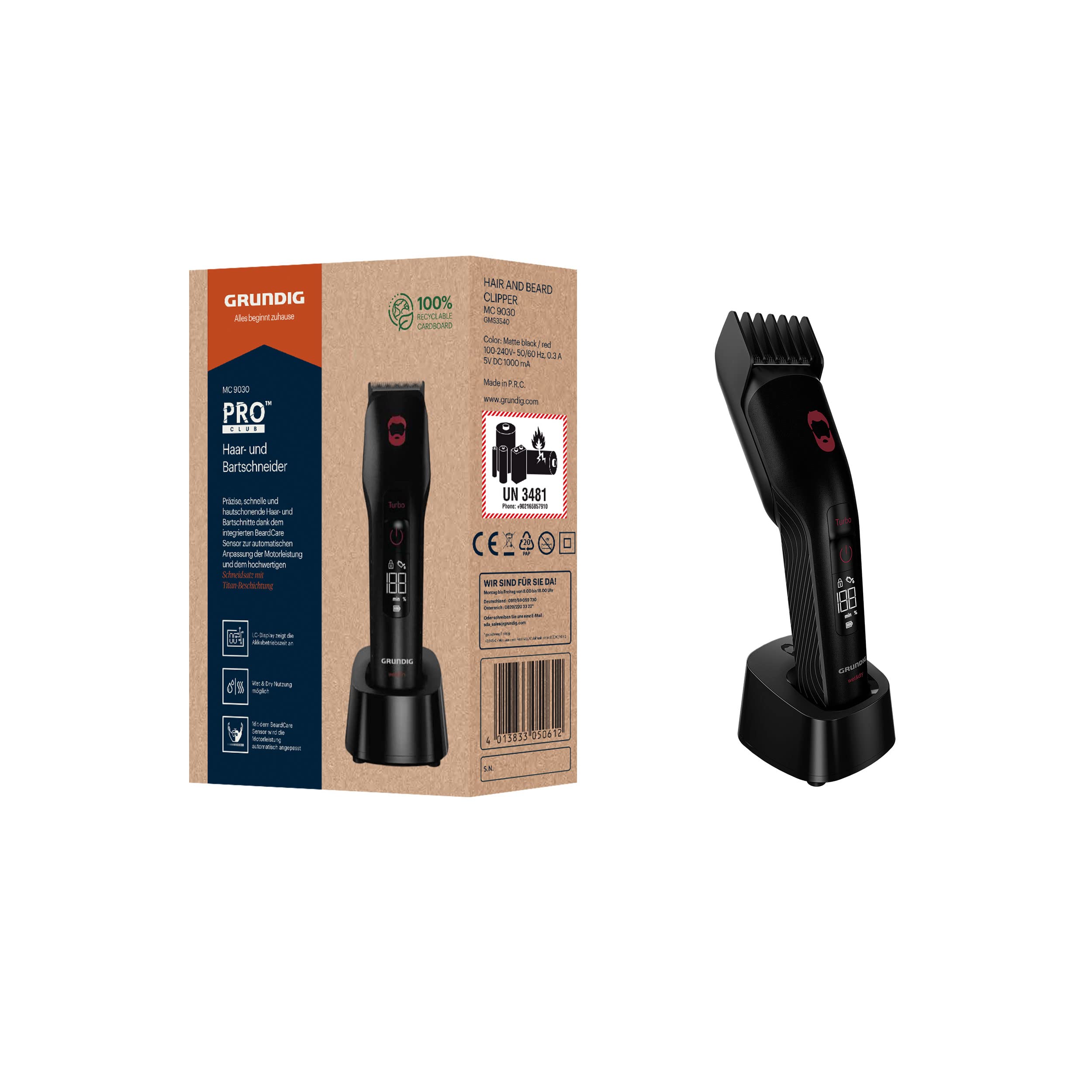 ![]() | GRUNDIG MC 9030 ProClub maszynka do włosów i brody, czujnik BeardCare, tryb Turbo, zestaw do cięcia z powłoką tytanową, do cięcia na mokro i sucho, szerokość cięcia 42 mm, wyświetlacz LCD, matowa | 39.16 zł | B09KPSQ9WZ | 4013833050612 |